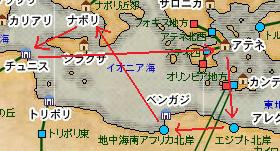 その後海岸伝いに西に行きトリポリの東(ベンガジのすぐ南と言った方がわかりやすよね?)の”地中海南アフリカ北岸”を目指します。