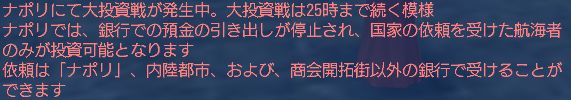 しかし、この大投資戦、お金さえあれば勲記を簡単にかつ大量に手に入れることが出来ますよね。ルールを見てみると発生時間帯がきまっているようですが私のような夜安定してINできないようなプレーヤーにとってはうらやましい限りです。それ以外には勅命をやったり納品をしたりと涙ぐましい努力が必要になりますからねぇ。できればもっと長い時間帯でやって欲しいと思う今日この頃。