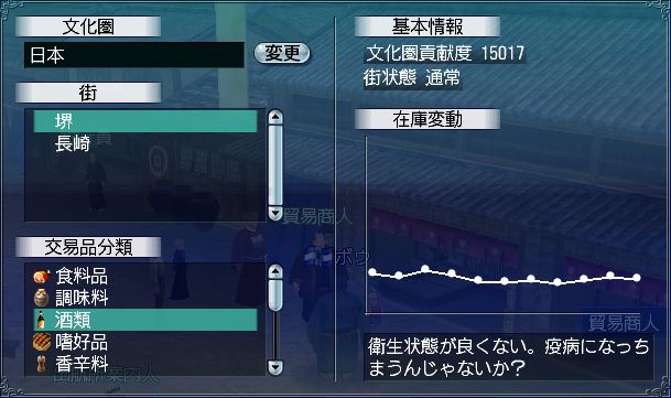 しかも到着直前まで堺は疫病、長崎は干ばつ。江戸はまだ許可出てないので見てません。これがどう影響するのか。