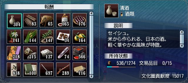 こんな感じに。いつもは日本画と日本刀が等価交換できるんですが、安全のせいかなぁ。まぁ、交換率87%だったらいいかなぁ。日本刀が等価なら、それをもって台湾に行けばいつもなら等価以上で交換できます。今回は素直に日本画に交換します。