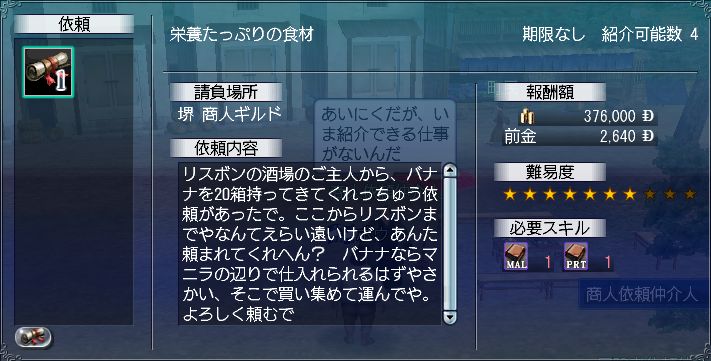 サクッと配達を終わらせ出航。リオから日本へのカテクエ作ってほしい・・