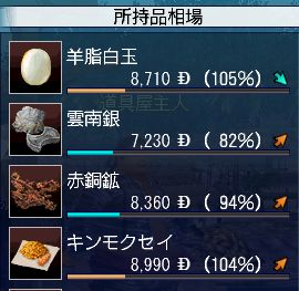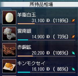 各貿易品の地域ごとの100%時の売値は以下の通り(計算値)。