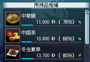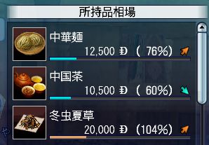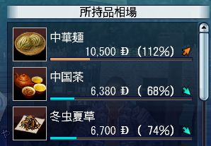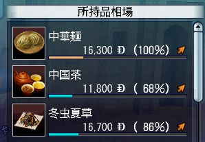 各貿易品の地域ごとの100%時の売値は以下の通り(計算値)。