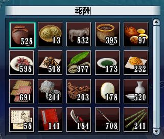 見ての通りカテ4商品たちです。カテ4が金庫から溢れそうだったのでいい具合に消費でき、気がつくと、いつの間にか華南文化圏貢献度が9498になってました。あと一回で次のステップに進めそうです。