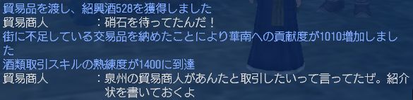 いいSS撮ろうとしたあまり貿易品選ぶの忘れて紹興酒と交換しちゃいました。初期に選択されてるやつね。