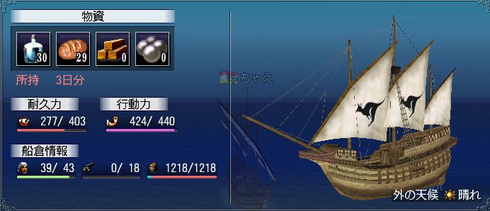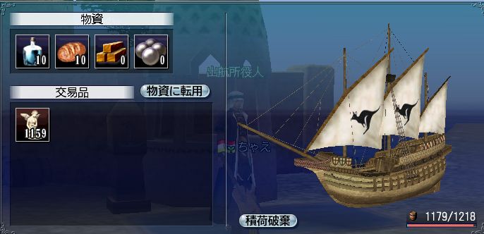 交易品を1159も積むと、私のちっぽけな船は水・食料はほとんど積めません。
