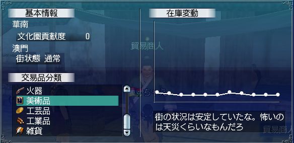 今回の華南貢献度アップの実験では南蛮回しを使わないと自分ルールを決めてるので、近場で売れる交易品がいいのですが・・・どれがいいのかさっぱりわからん。wikiにもEU付近の価値は載っているものの近場は軒並み?となっています。こうなったら自分で調べるしかない。