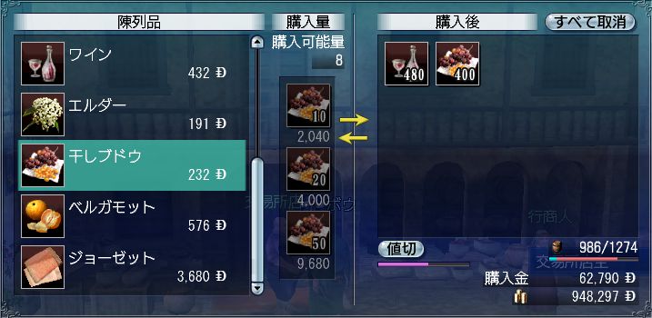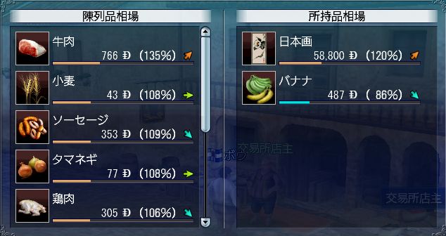 メインは取引スキルが調味料しかないので(商会の方からはなんでそんなスキル持ってんの?と言われたことがあります)南蛮スタイルは「EUから持ち込み、EUに持ち帰り」です。おかげで1回の交易でものすごく時間がかかります。効率としてはどうなのか、とたまに考えますが選択肢がないためこれで落ち着いてます。