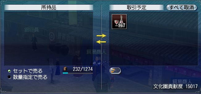 こんな感じに。いつもは日本画と日本刀が等価交換できるんですが、安全のせいかなぁ。まぁ、交換率87%だったらいいかなぁ。日本刀が等価なら、それをもって台湾に行けばいつもなら等価以上で交換できます。今回は素直に日本画に交換します。