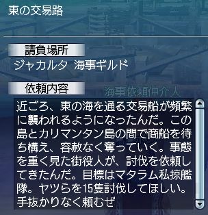 早速ジャカルタへ行きクエを受けます。受けるクエは定番のこちら。