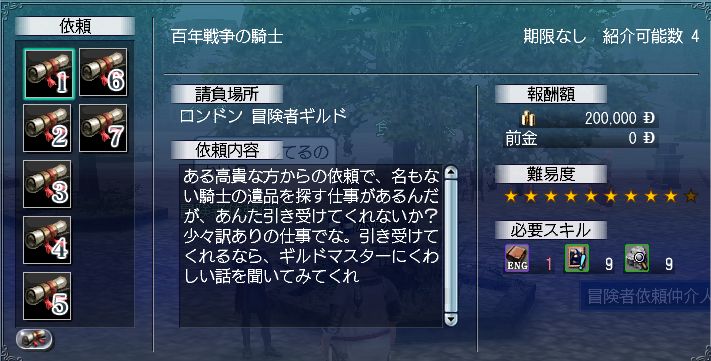 そのままロンドンに向かい依頼斡旋してもらいます。無事に出るかな~っと思ってたらなんと一発目で