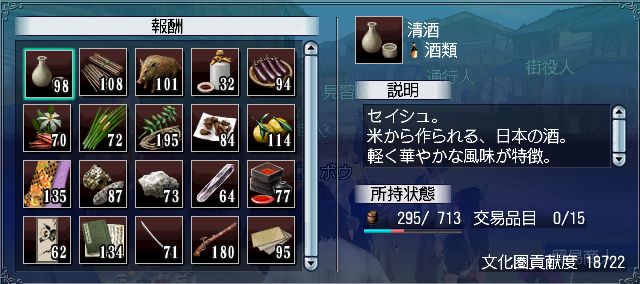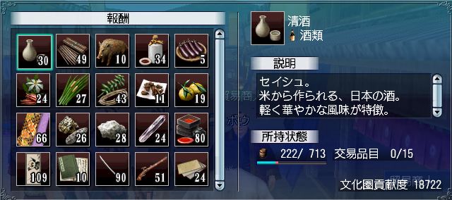 在庫が少ない交易品を持ち込めばいいだろう。と判断した私は迷わず調味料取引を取ってしまったわけです。カテ1を使うので、懐にも優しいですしね。そしても、しかしたら将来錬金術をやることになるかもしれないので、ちょっとは役に立つかな、と思ったり。